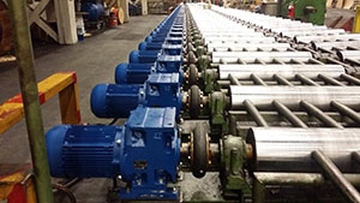 An example of the use of an elastic Periflex coupling for driving rollers in an ironworks.