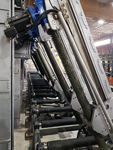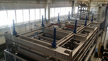 An example of the use of ball spindles-actuators for raising the slope of the heel in the ironworks. The linear actuators are driven by 7.5kW servo motors. Ball screw drives are suitable for high speeds and a large number of duty cycles. The protective bellows protects the ball spindle from dirt.